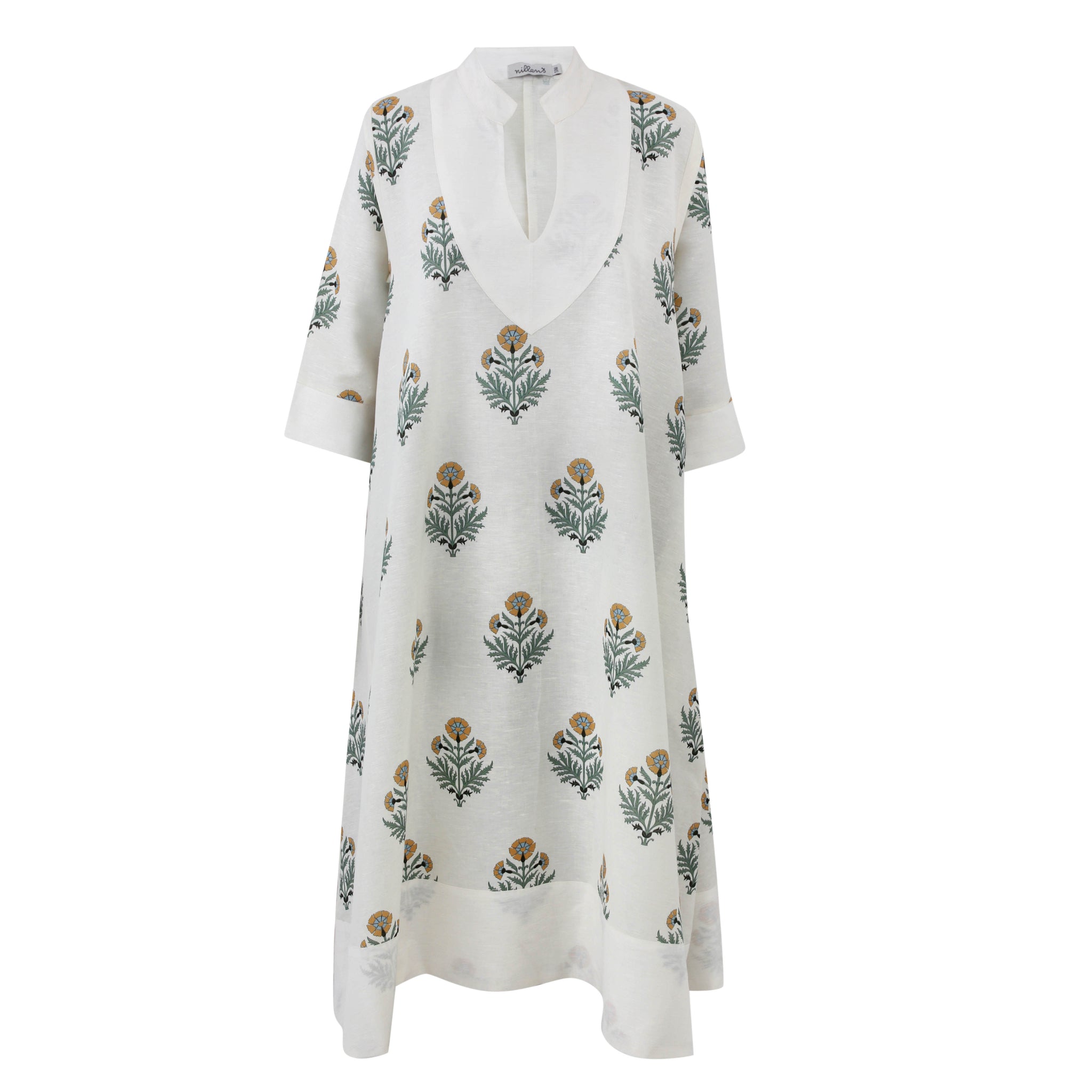 Sunlit Florals Linen Kaftan Dress